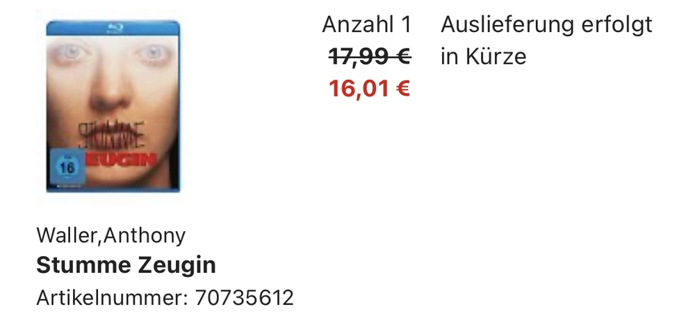 Die Meldung " Auslieferung erfolgt in Kürze" habe ich bei meinen beiden verbliebenden offenen Bestellungen auch ... seit SamstagJo, bin gespannt: bei mir 4 Titel auf „Artikel vorbestellt, Versandfertig in über 4 Wochen“ (was in 3 der Fällen aber nachvollziehbar und realistisch ist).Interessanterweise steht bei meinem Artikel nun wieder "sofort lieferbar" und nicht mehr "Versandfertig in über 4 Wochen" und bei der Bestellung auch wieder "Auslieferung erfolgt in Kürze". Hab Hoffnung, dass da zumindest die Artikel, die auf Lager sind, noch verschickt werden.