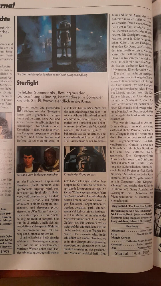 Da guck ich doch in meine Cinema 4/85:Weißt Du zufällig, ob in dem 1984 Band was von Starfight / The last Starfighter drin ist?