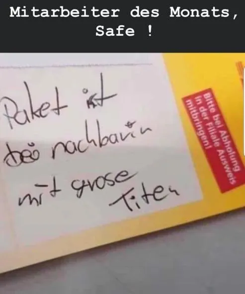 Die darf nicht in die Tankstelle (mein Standard Ablegeort) geliefert werden, sondern an meine Hausadresse. Soweit okay.