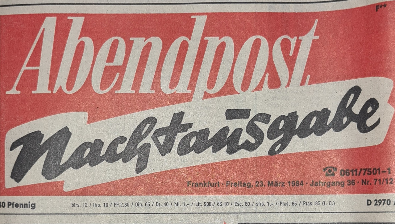 Etwas Ausgefallen. Früher gabs neben der Bild noch die Abendpost Nachtausgabe aus Frankfurt am Kiosk. Kennt die noch jemand? War auch im Saarland recht beliebt.