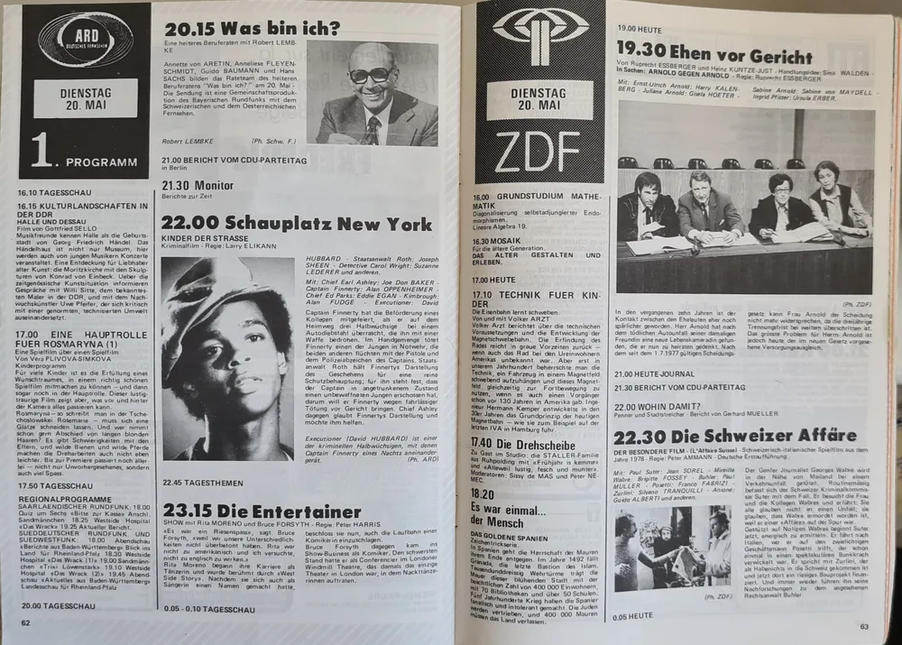 Und wieso war das komplett in Deutsch abgedruckt?Wenn ARD und ZDF so viel Platz bekommen haben, wie groß waren dann die Franzosen?Was ein wenig exotisches. Aus der französischen TV Zeitschrift "EST - Tele Flash" aus dem Jahr 1980