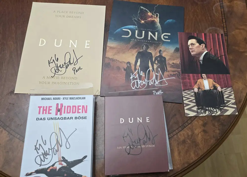 Also in dem Fall hab ich ca. 3 Stunden gewartet bis er nach dem Award wieder am Hotel ankam. Früher war das ein Hobby von mir was darin gipfelte das ich fast jeden Tag wegen sowas unterwegs war. Heute mach ich das nur noch ca. 1-2 Mal im Jahr. Da ich aber großer Dune Fan bin, hatte ich da einfach mal wieder Bock und meine Warterei ist belohnt worden. Er war wirklich total nett und hat sich mega viel Zeit für die Leute genommen und alles signiert was sie bei hatten und hat danach noch Fotos mit jedem gemacht der wollte. Absolut klasse der Mann, hab schon ganz andere erlebt wo man mit hängen und würgen ein Autogramm bekommen hat, er war komplett tiefenentspannt.